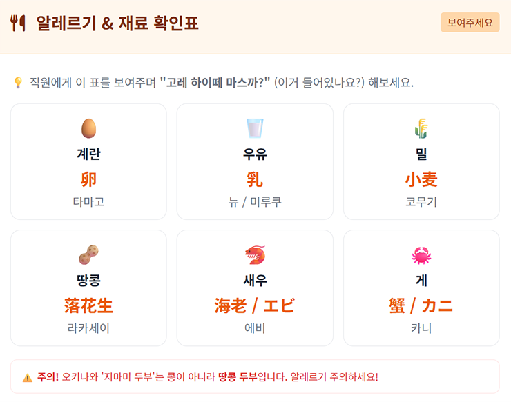 특히 피부가 예민하거나 알레르기가 있는 아이 엄마들은 여행지에서 먹는 음식에 뭐가 들었을 지 걱정될 수밖에 없어요.