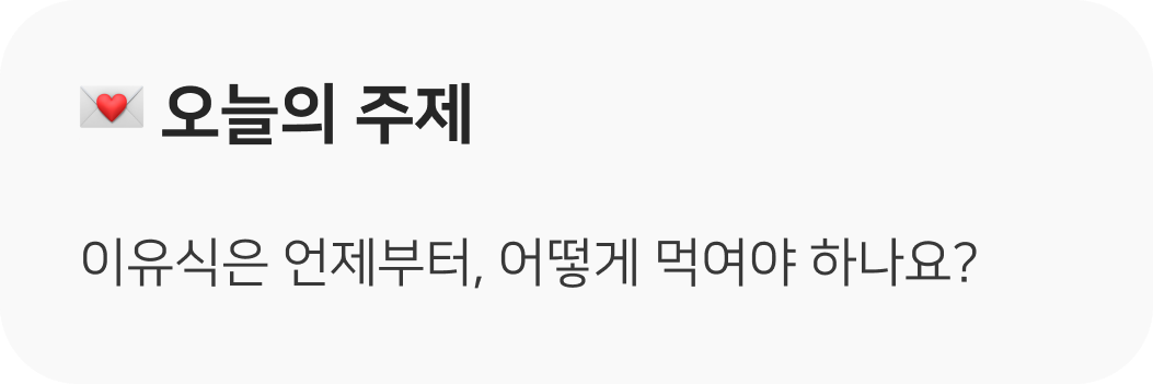 오늘은 이유식의 시작 시기와 방법에 대해 함께 알아볼게요.
