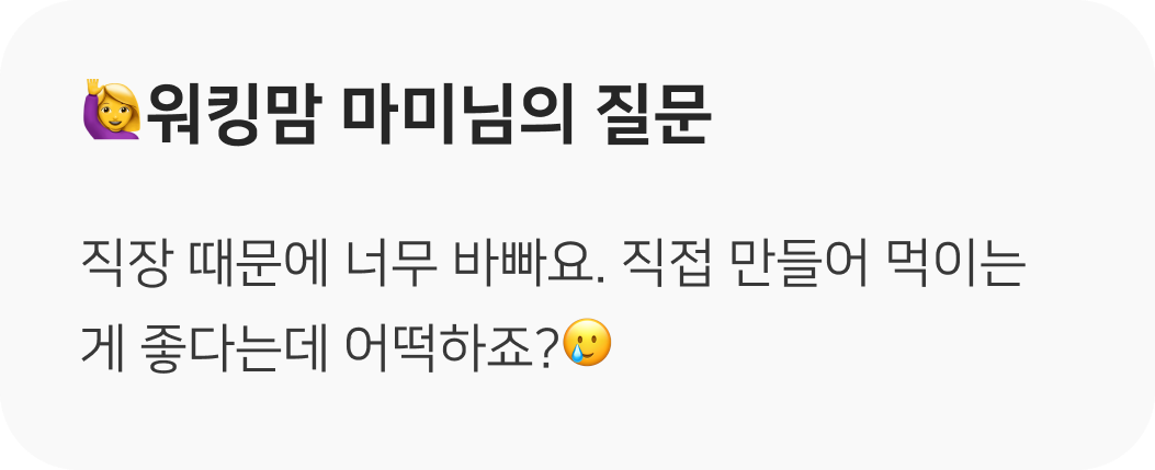 그래도 결정하기 어렵다면, 마미톡이 위 체크리스트에 따라 셀렉한 이유식 밀키트도 확인해 보세요!