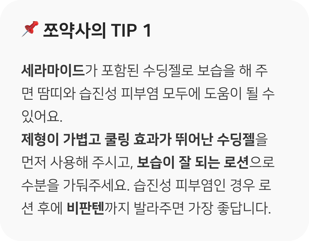 ▪️관리법 : 수딩젤로 쿨링+로션으로 보습,